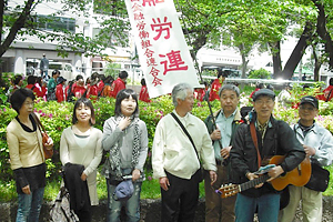 大阪メーデー: 扇町公園で開かれ、金融ユニオンの仲間を中心に9人が参加。 |